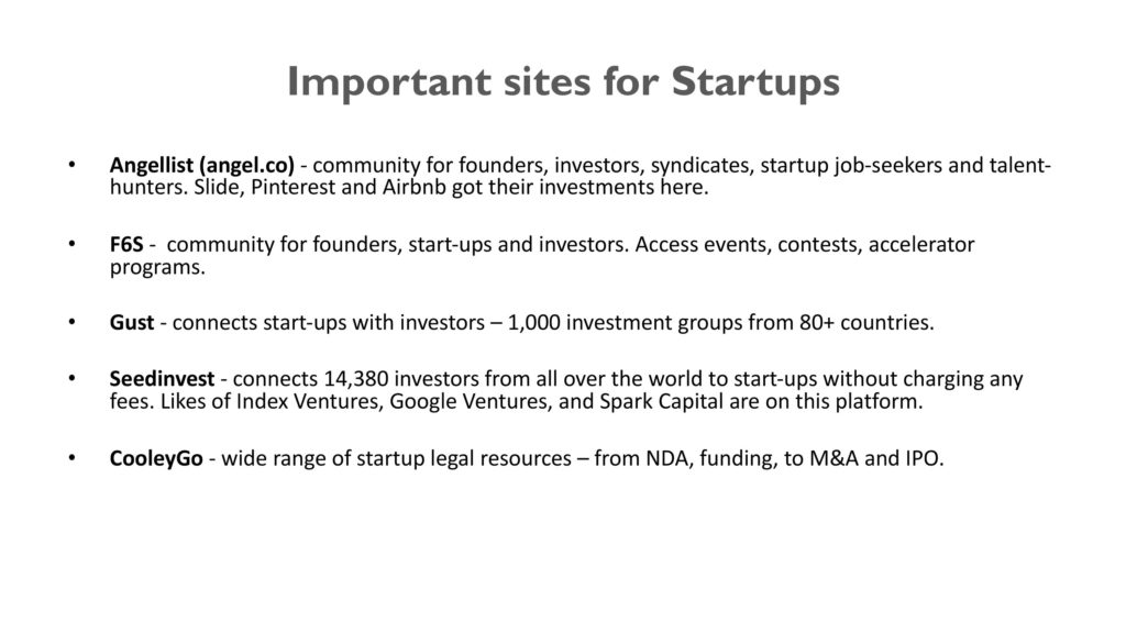 Important sites for Startups